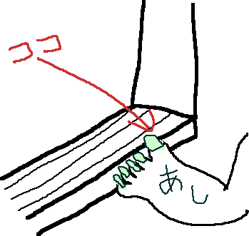 敷き居のところで 足の爪をひっかけて